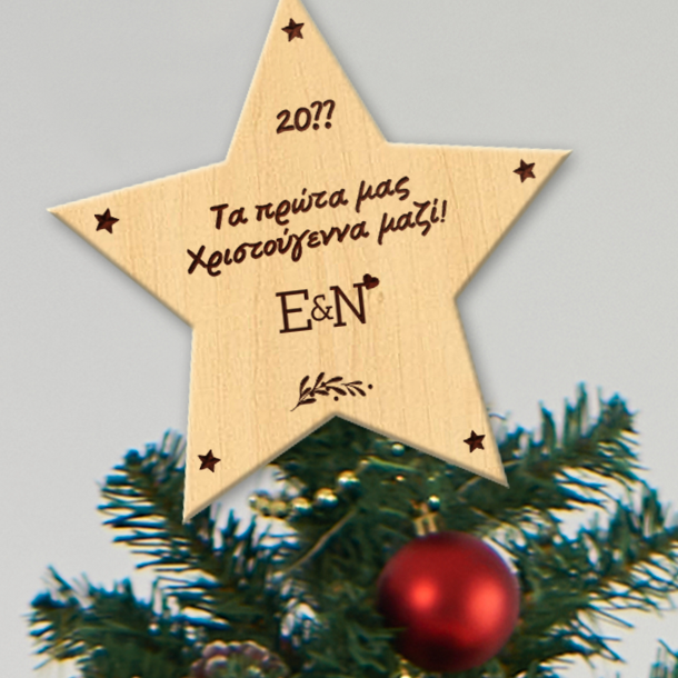 Κορυφή Δένδρου με Χάραξη Μήνυμα, Ξύλινο Αστέρι, με χάραξη λέιζερ, προσωποποιημένο δωρο χριστουγεννων με όνομα και έτος είναι το δώρο που θα κάνετε στην νονά ή την θεία και θα μείνει για πάντα στο σπίτι τους θυμίζοντας την στιγμή που το προσφέρατε.