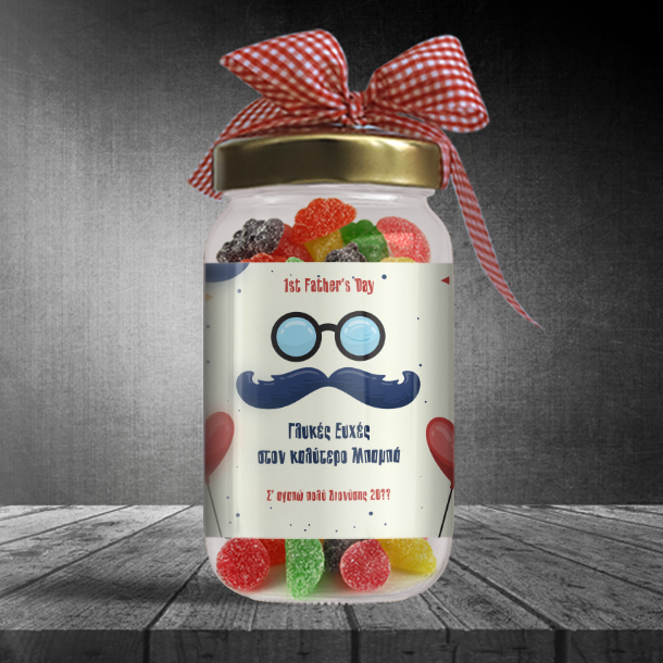 Πρωτότυπο Με μουστάκι Βαζάκι με Καραμέλες με Μήνυμα, Ευχές Προσωποποιημένο δωρο για τον Μπαμπά για την γιορτή του πατέρα, για να πείτε χρόνια πολλά στον αγαπημένο σας μπαμπα που γιορτάζει.