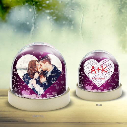 Ένα Μοναδικό Προσωποποιημένο Δώρο Χιονόμπαλα για Ερωτευμένους Προσωποποιημένο Παιχνίδι με Καρδιά, για να πείτε χρόνια πολλά στον αγαπημένο σας ή την αγαπημένη σας με αφορμή του αγίου Βαλεντίνου την Γιορτή των Ερωτευμένων, με την αγαπημένη σας φωτογραφία.