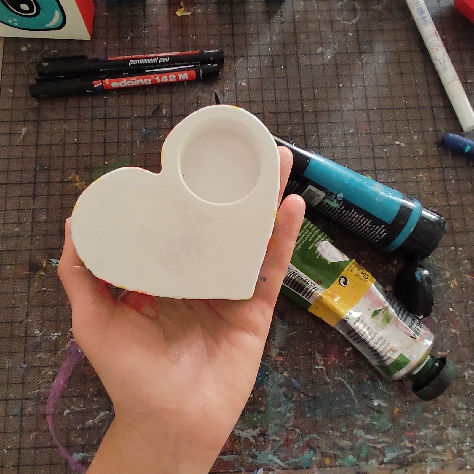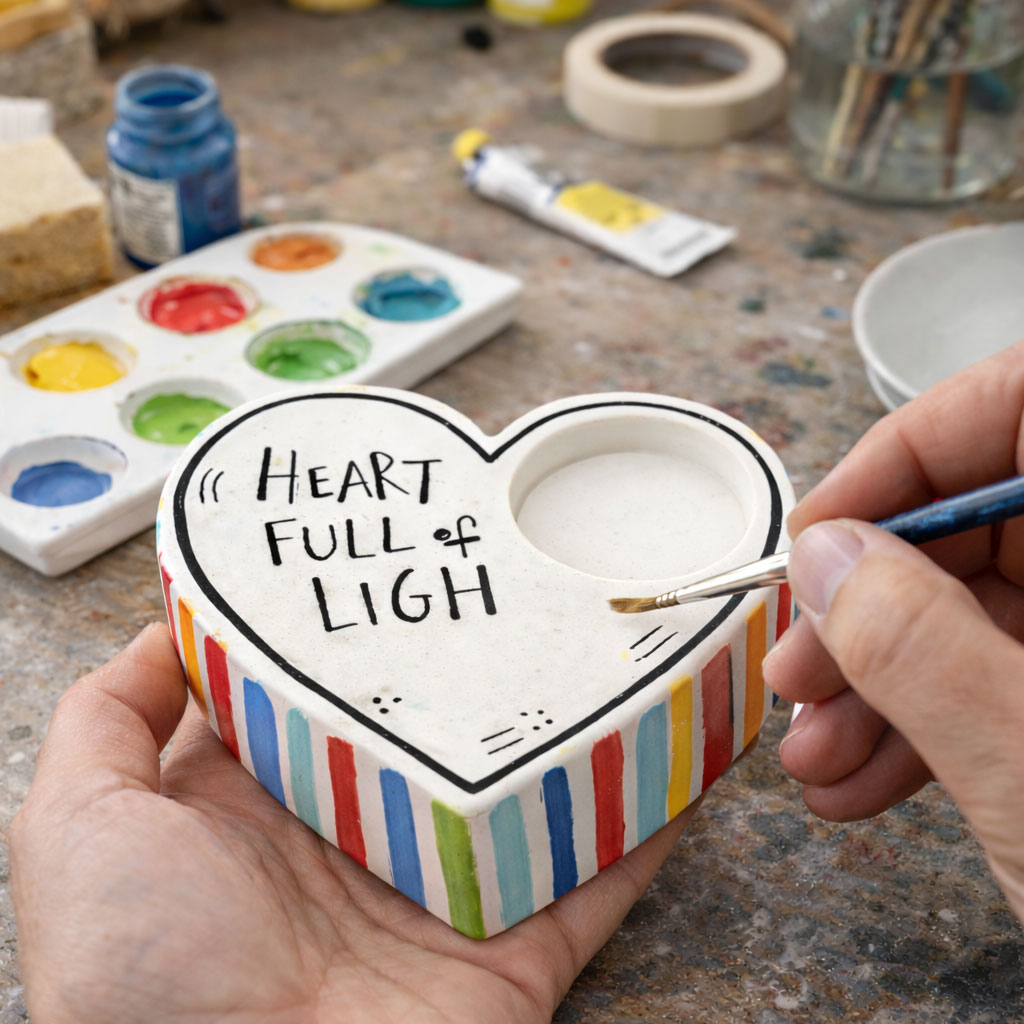 Κηροπήγιο σε σχήμα καρδιά από λευκό τσιμέντο, με θήκη ρεσώ.