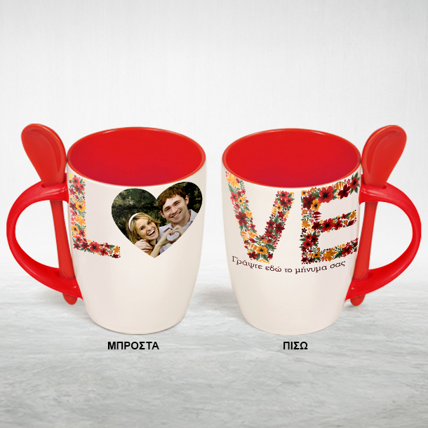 Κόκκινη Κούπα με Κουταλάκι Δώρο με Φωτογραφία σε Καρδιά