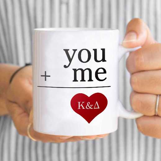 Ένα Μοναδικό Προσωποποιημένο Δώρο Κούπα για Ερωτευμένους Προσωποποιημένη με Αρχικά, You + Me, για να πείτε χρόνια πολλά στον αγαπημένο σας ή την αγαπημένη σας με αφορμή την Γιορτή των Ερωτευμένων.