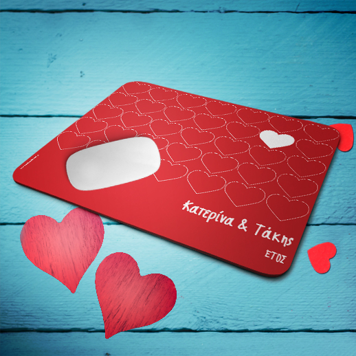 Ένα Μοναδικό Προσωποποιημένο Δώρο Προσωποποιημένο Mouse Pad Κόκκινο με Καρδιές, για Ερωτευμένους, για να πείτε χρόνια πολλά στον αγαπημένο σας ή την αγαπημένη σας με αφορμή του αγίου Βαλεντίνου την Γιορτή των Ερωτευμένων, με την αγαπημένη σας φωτογραφία.