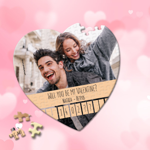 Πρωτότυπο Προσωποποιημένο σε σχήμα καρδιάς, Puzzle με φωτογραφία, will you be ... με ονόματα, ημερομηνία, ένα μοναδικό Προσωποποιημένο Δώρο για Ερωτευμένους, για να πείτε χρόνια πολλά στον αγαπημένο σας ή την αγαπημένη σας με αφορμή του αγίου Βλαντίνου την Γιορτή των Ερωτευμένων, με την αγαπημένη σας φωτογραφία.