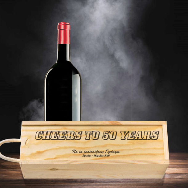 Α. Ξύλινο Κουτί για 1 Κρασί με ειδική Προσωποποιημένη εκτύπωση & 2 Ετικέτες για μπουκάλι, Ξύλινο κουτί με Διαστάσεις 9,5 cm X 34,5 cm Χ 9,8 cm