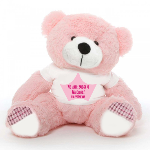 Ένα μοναδικό δώρο για κάθε νεογενητο κοριτσάκι στο οικογενειακό σας περιβάλλον, Αρκούδος 45cm Δώρο για Νεογέννητο Κοριτσάκι με Όνομα, Ημερομηνία, με προσωποποιημένο tshirt για να ευχηθείτε και να Καλωσόρισετε την Μπέμπα, που μόλις γεννήθηκε και να ευχηθείτε στους γονείς του.