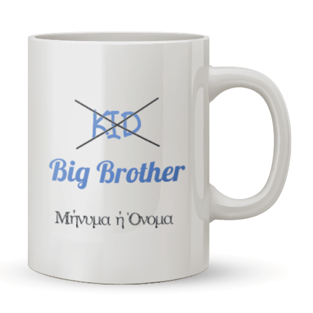 Ένα Μοναδικό Προσωποποιημένο Δώρο γενεθλιων για γυναίκες, άνδρες, παιδιά, αγόρια & κορίτσια, Κούπα Big Brother με Όνομα, δώρο για Αγόρια, Άνδρες. Το Πρωτότυπο Δώρο οικονομικό δώρο που μπορείτε να κάνετε με αφορμή τα γενέθλια της, στην κολλητή σας φίλη για να πίνει τον καφέ της είναι μια προσωποποιημένη Κούπα Big Brother με Όνομα, δώρο για Αγόρια, Άνδρες. Πείτε Happy Birthday & Χρόνια Πολλά στον αδελφό σας με μια προσωποποιημένη Κούπα με Μήνυμα, Ονόματα, Ευχές, φωτογραφίες, για να σας θυμάται κάθε φορά που θα πίνει τον καφέ του.
