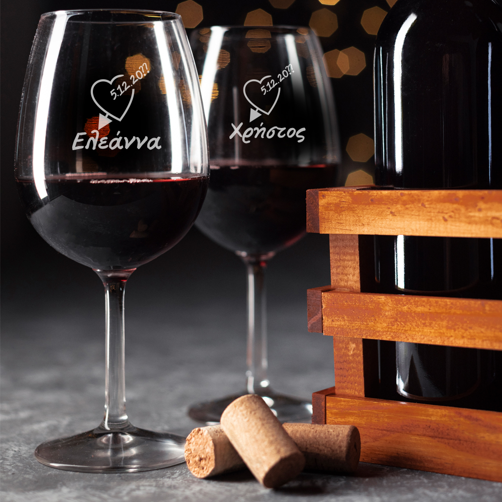 Β. Με Κόκκινο Κρασί Ξύλινο Κουτί με ειδική Προσωποποιημένη εκτύπωση και ένα Κόκκινο Μπουκάλι Κρασί & 2 Ετικέτες