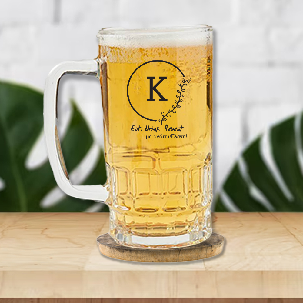 Εκτύπωση σε Ποτήρι Μπύρας με Όνομα, Eat, Drink, Repeat, δώρο για Γιορτή Πατέρα, fathers day είναι ένα διαφορετικό δώρο για τον Μπαμπα σας, με αφορμή την γιορτή του πατέρα που είναι κάθε χρόνο την τρίτη κυριακή κάθε ιουνίου και θα μείνει αναμνηστικό για πάντα.