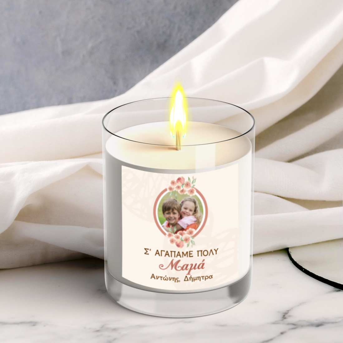 Προσωποποιημένο με Ονόματα, Μήνυμα, Αρωματικό Κερί σε Ποτήρι Δώρο για Μαμά με Φωτογραφία για Χρόνια Πολλά, στις γιορτές του Πάσχα. Δώρο Γενεθλίων για κάθε φίλη με Ονόματα, Μήνυμα, Αρωματικό Κερί σε Ποτήρι,