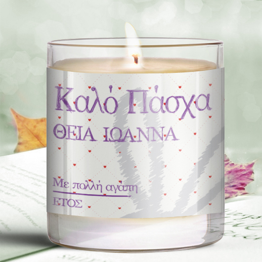 Το Προσωποποιημένο Πασχαλινό Δώρο Κερί σε Ποτήρι για την Θεία, Καλό Πάσχα και όνομα είναι ένα πρωτότυπο δώρο για το Πάσχα στον θείο και την θεία που δημιουργεί μοναδικές στιγμές και αναμνήσεις!