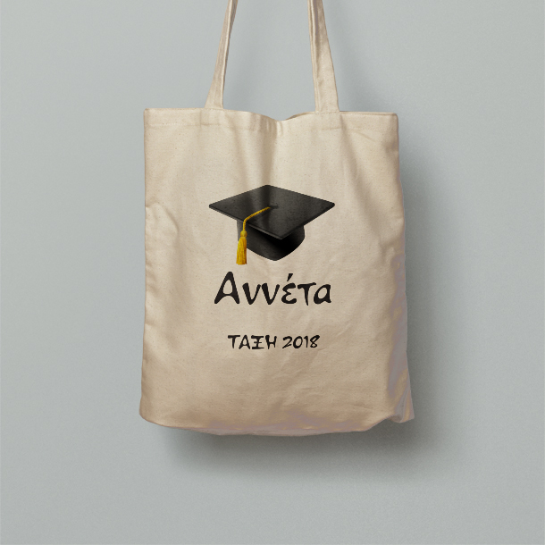Τσάντα Αγορών για αποφοίτηση, με Καπέλο, Όνομα, στην πιο ξεχωριστή μέρα για κάθε μαθητη του δημοτικού ή του γυμνασίου ή του λυκείου, που ολοκληρώνει ένα στάδιο των σπουδών του, που θα εντυπωσιάσει και θα δείξετε ότι την θυμηθήκατε και πόσο πολύ την αγαπάτε!