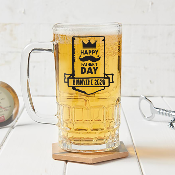 Happy Father's Day Γυάλινο Ποτήρι Μπύρας με Όνομα, Έτος, μπορείτε να το προσφέρετε στον παππού σας, για δώρο γενεθλίων η δώρο γιορτής καθώς με κάθε άλλη αφορμή την γιορτή του Πατέρα, που θέλετε να δείξετε πόσο την αγαπάτε και ότι την θυμηθήκατε.