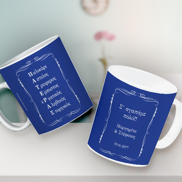 Γράψτε το μήνυμα που θέλετε στο δώρο του Παππού και να είστε σίγουρες ότι θα τον εντυπωσιάσει. Η Προσωποποιημένη κούπα για Χρόνια Πολλά στον Μπαμπά με ονόματα, θα είναι πραγματικά ένα ξεχωριστό και πρωτότυπο δώρο με αφορμή τα Γενέθλια ή την Ονομαστική γιορτή του πολυαγαπημένου σας μπαμπά.
