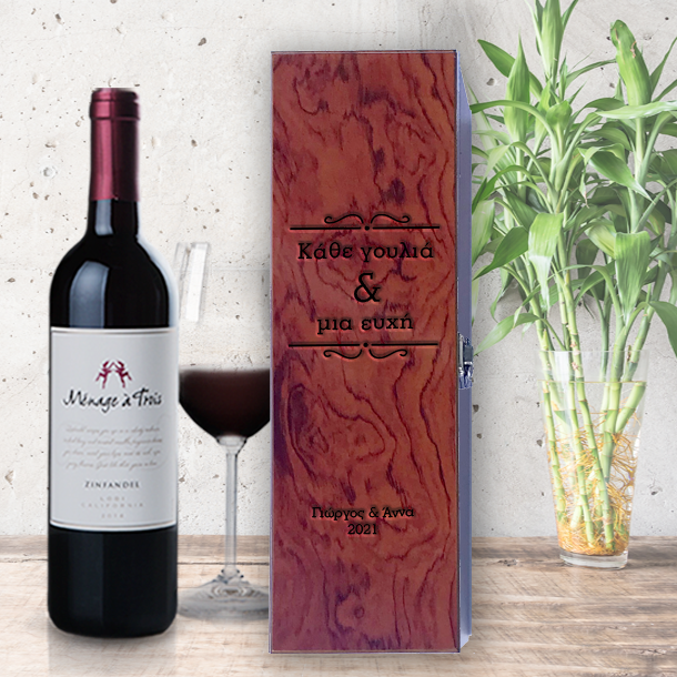Επίσης το Προσωποποιημένο δώρο ξύλινη Θήκη με Κρασί χαραγμένη με Ονόματα, Μήνυμα, ή Ευχές και ημερομηνία είναι αυτό που μπορείτε να προσφέρετε για δώρο γενεθλίων.