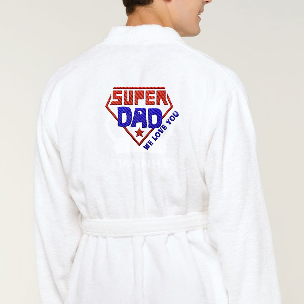 Με Κέντημα Μπουρνούζι Super Dad με Όνομα ή Μήνυμα, για Άνδρες, Μοναδικό Προσωποποιημένο Δώρο γενεθλίων, για γενέθλια. Μια πρωτότυπη ιδέα για δώρο επετείου στον άνδρα σας ή σε κάθε φίλο που γιορτάζει είναι το Προσωποποιημένο Με Κέντημα Μπουρνούζι Super Dad με Όνομα ή Μήνυμα.