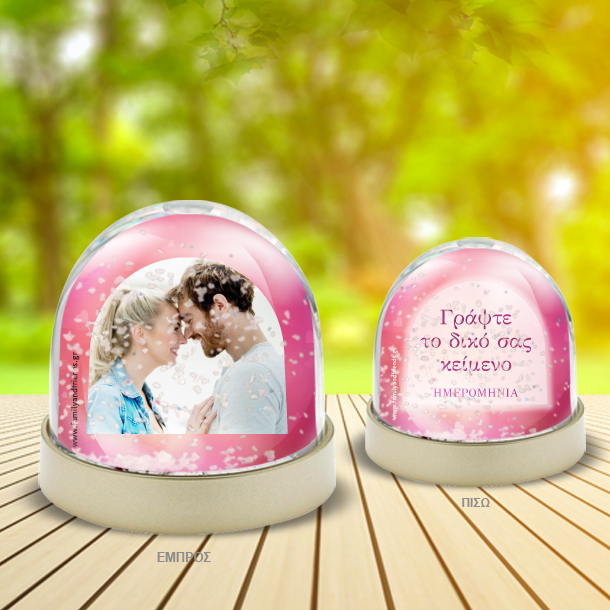 Γράψτε ότι θέλετε σε Χιονόμπαλα για Επέτειο με φωτογραφία στο πρωτότυπο και οικονομικό δώρο που μπορείτε να κάνετε με κάθε αφορμή στη σχέση σας, που θα εντυπωσιάσει και θα δείξετε ότι τον θυμηθήκατε και πόσο πολύ τον αγαπάτε!