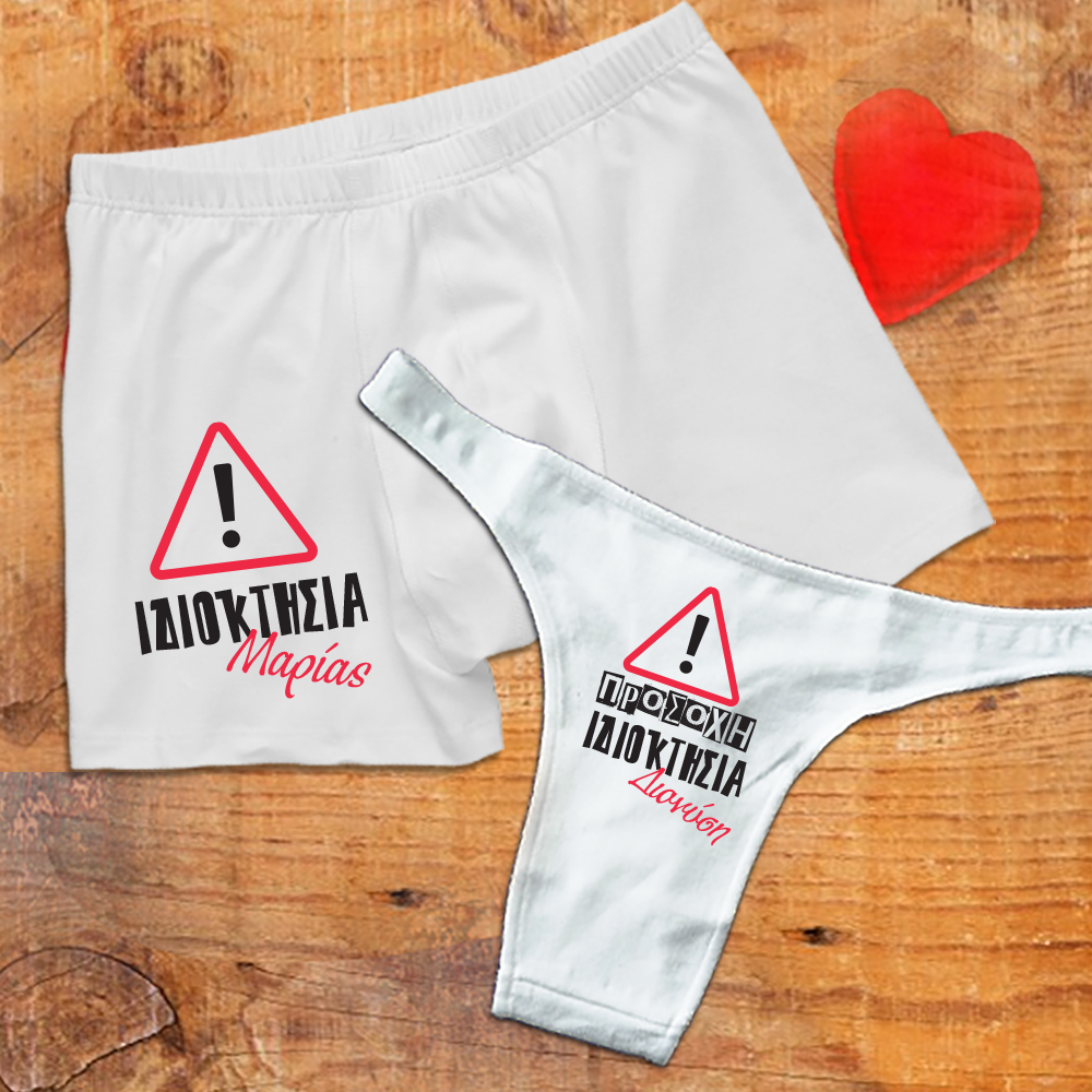 Δώρο για Αγίου Βαλεντίνου Προσωποποιημένα Μεμονωμένα ή Σετ Ανδρικά & Γυναικεία Εσώρουχα με Ονόματα, για να πείτε χρόνια πολλά στον αγαπημένο σας ή την αγαπημένη σας. Το Προσωποποιημένο Δώρο Μποξεράκι & Κιλοτάκι με Ονόματα σε σετ ή μονά για την επόμενη επέτειο σας με ονόματα ή ημερομηνία, είναι ένα πρωτότυπο και οικονομικό δώρο που θα εντυπωσιάσει το αγόρι σας μόλις ανοίξει το κουτί του. δώρου.