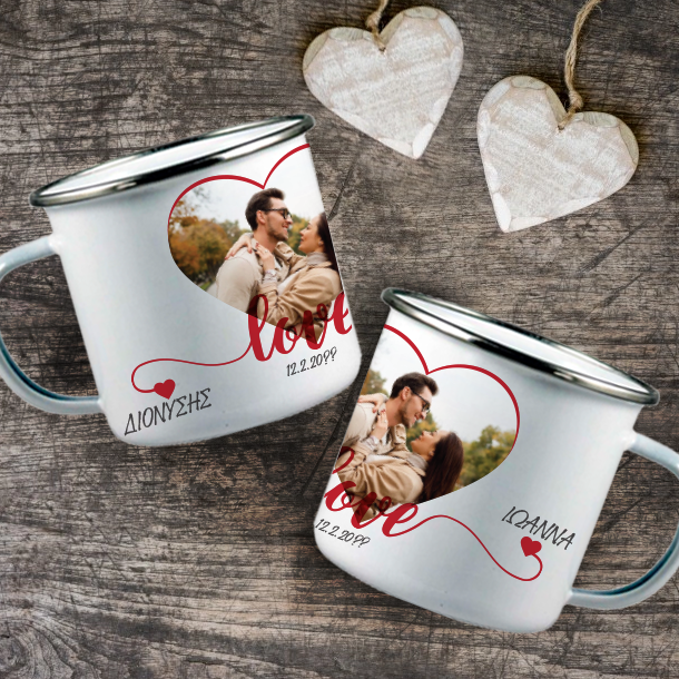 Δώρο για την ημέρα του αγίου Βαλεντίνου, Προσωποποιημένη Kούπα μεταλλική με Φωτογραφία σε καρδιά, Ονόματα, Έτος. Ένα Προσωποποιημένο Δώρο που ξεχωρίζει από όλα τα άλλα που έχετε κάνει μέχρι σήμερα.