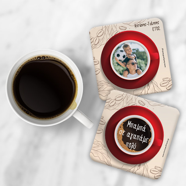Ένα Μοναδικό Προσωποποιημένο Δώρο 2 Σουβέρ με Μήνυμα, Φωτογραφία, Ονόματα, για Γιορτή ή γενέθλια του αγαπημένου σας Μπαμπά.