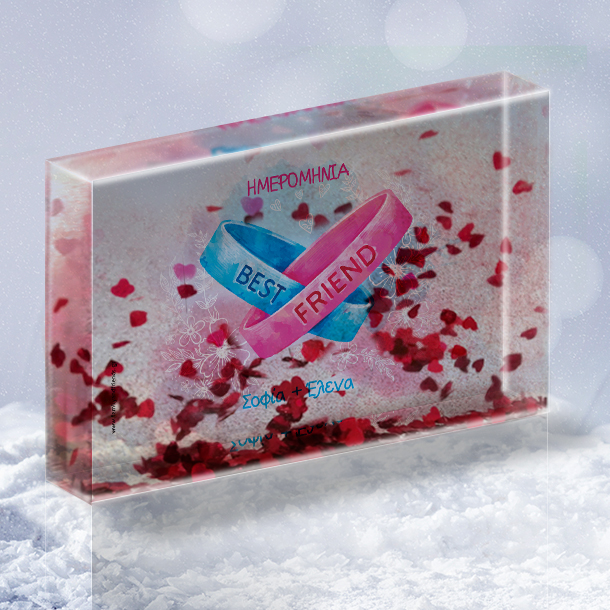 Κορνίζα με αιωρούμενες καρδούλες Best Friends, με Μήνυμα, Ημερομηνία