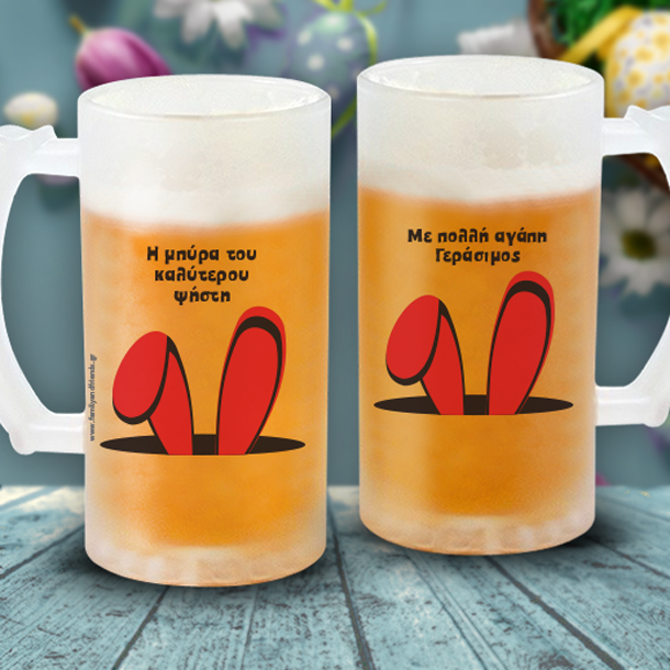 Ποτήρι Μπύρας με Σκίτσο, Δώρο για άνδρες, με Όνομα, Ευχές, για τον Παππού, το πασχαλινό δώρο και θα εκφράσει με μοναδικό τρόπο τις ευχές σας για την ανάσταση και τις ημέρες του Πάσχα.
