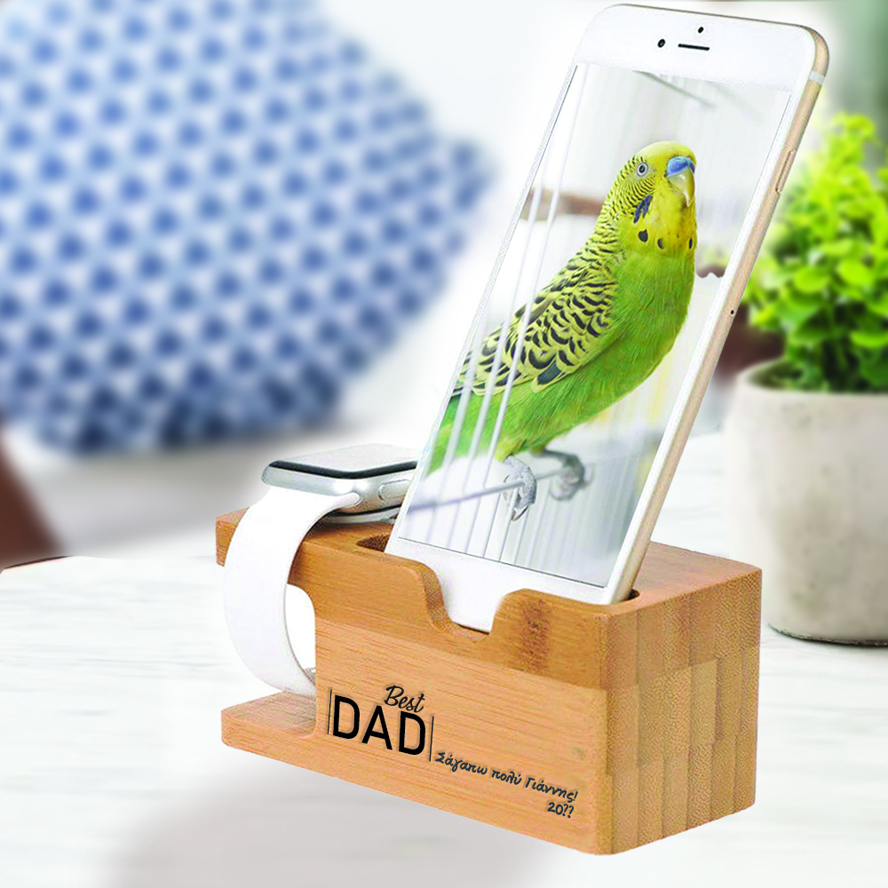 Δώρο για τον Μπαμπά Προσωποποιημένoς για i-phone, i-watch Ξύλινη βάση για φόρτιση τηλεφώνου, ρολογιού με χάραξη Μήνυμα & Όνομα, ένα ξεχωριστό δώρο για την Γιορτή του Πατέρα, 1st father's day, που είναι κάθε Ιούνιο την 3η Κυριακή! Στα προσωποποιημπένα δώρα μπορείτε να γράψετε θέλετε εσείς κάνοντας τα μοναδικά, για να θυμάστε για πάντα την στιγμή που ζήσατε με τον Μπαμπά.