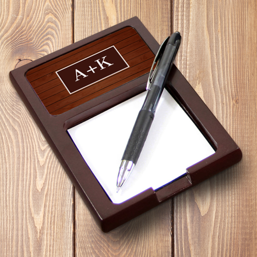 Η Ξύλινη Θήκη για Post it, Προσωποποιημένη για σημειώσεις με Αρχικά, είναι ένα μοναδικό δώρο για να ευχηθείτε σε κάθε συνεργάτη στο γραφείο ή εκτός γραφείου με αφορμή την γορτή του ή κάποιο εταιρικό γεγονός.