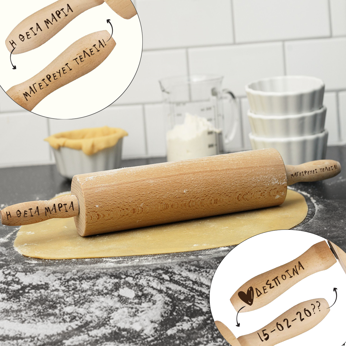Φέτος κάντε ένα διαφορετικό & οικονομικό δώρο για την κουζίνας στην γυναίκα σας με αφορμή την 1η σας επέτειο στο γάμο ή την σχέση σας, Ξύλινος Πλάστης ζύμης με σχεδια Ονόματα.