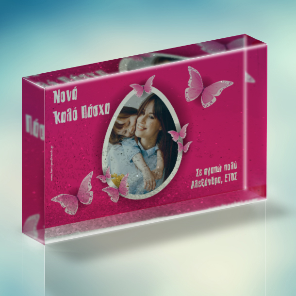 Ένα διαφορετικό Πασχαλινο δώρο Πρωτότυπη Προσωποποιημένη Κορνίζα με γκλίτερ, για Καλο πασχα σε όποιον θέλετε να ευχηθείτε, για Παππού, Γιαγιά, για να κρατήσετε για πάντα ζωντανή την ανάμνηση της στιγμής. Η Πασχαλινη Προσωποποιημένη Κορνίζα με Γκλίτερ, με Φωτογραφία, Ευχές Δώρο για Πάσχα, για την νονα, νονο, είναι το ξεχωριστό δώρο που μπορει να κάνει φέτος κάθε βαφτιστήρι. Κάντε ένα διαφορετικό δώρο στο νονό ή νονά του αυτο το πασχα, για να εκφράσετε την αγάπη σας με ένα ξεχωριστό τρόπο και με ένα μοναδικό και προσωπικό δώρο που δημιουργεί μοναδικές στιγμές. Επίσης το δωρο για το Πάσχα Προσωποποιημένη Κορνίζα με Γκλίτερ, με Φωτογραφία, Ευχές, για τον Παππού, την Γιαγιά είναι ένα ξεχωριστό δώρο απο το εγγονάκι τους αυτό το Πασχα που θα περασουν μαζί τις γιορτες. Προσωποποιημένη Κορνίζα με Γκλίτερ, με Φωτογραφία, Ευχές, Δώρο για Πάσχα, είναι το ξεχωρστό και πρωτότυπο Δώρο Πασχαλινό για την θεία, τον θείο από το ανηψάκι της που εκφράζει τα μοναδικά συναισθήματα, είναι προσωπικό, ξεχωριστό και δημιουργεί μοναδικές αναμνήσεις για πάντα. Στα Προσωποποιημένα Πασχαλινα δώρα με ή χωρίς Φωτογραφία, για την νονα ή τον νονο μπορείτε να αλλάξετε τα κείμενα όπως εσείς θέλετε ανεξάρτητα από την δική μας πρόταση. Το Δώρο Πάσχα Προσωποποιημένo με Ευχές, Κορνίζα με αιωρούμενο γκλιτερ, και άλλα πρωτοτυπα χειροποιητα Πασχαλινα δωρα, με Ευχές, θα κρατηθεί σαν αναμνηστικό για πάντα από κάθε δάσκαλο ή δασκάλα. Το Προσωποποιημένο Πασχαλινο Δώρο στην Καλύτερη Θεία, Προσωποποιημένη Κορνίζα με Γκλίτερ, με Φωτογραφία, Ευχές, Δώρο για Πάσχα για Χρόνια Πολλά, είναι το ξεχωριστό δώρο για κάθε φίλο ή συγγενή στις γιορτές, είναι ένα ξεχωριστό δώρο για την αγαπημένη σας θεία ή θείο αυτο το Πάσχα. Στο familyandfriends.gr θα βρείτε μοναδικά προσωποποιημένα δώρα γενεθλίων και δώρα γιορτών προσωποποιημένα για αγόρια και κορίτσια, άνδρες και γυναίκες. Πρωτότυπα Δώρα Γενεθλίων για ενήλικες, για Άνδρες, για Γυναίκες, δωρο γενεθλιων για την κοπελα μου. Πρωτότυπα Προσωποποιημένα Δώρα Γενεθλίων για ενήλικες, για Γυναίκες. προσωποποιημενα δωρα γενεθλιων για φιλες. ΣΕ ΚΑΘΕ ΠΡΟΙΟΝ ΜΠΟΡΕΙΤΕ ΝΑ ΓΡΑΨΕΤΕ ΟΤΙ ΘΕΛΕΤΕ ΕΣΕΙΣ ΑΝΕΞΑΡΤΗΤΑ ΑΠΟ ΑΥΤΟ ΠΟΥ ΣΑΣ ΠΡΟΤΕΙΝΟΥΜΕ ΠΕΡΙΓΡΑΦΗ Πρωτότυπη Κορνίζα με αιωρούμενο Γκλίτερ σε υγρό σαν την κλασική χιονόμπαλα που ξέρετε αλλά αντί για χιόνι αιωρείται glitter μέσα στο υγρό Διαστάσεις 10cm Χ 15cm Χ 2cm Στέκεται με την μικρή ή την μεγάλη διάσταση 4χρωμη εκτύπωση για το εικαστικό Το χρώμα της συσκευασίας δώρου μπορεί να διαφέρει ανάλογα με την διαθεσιμότητα