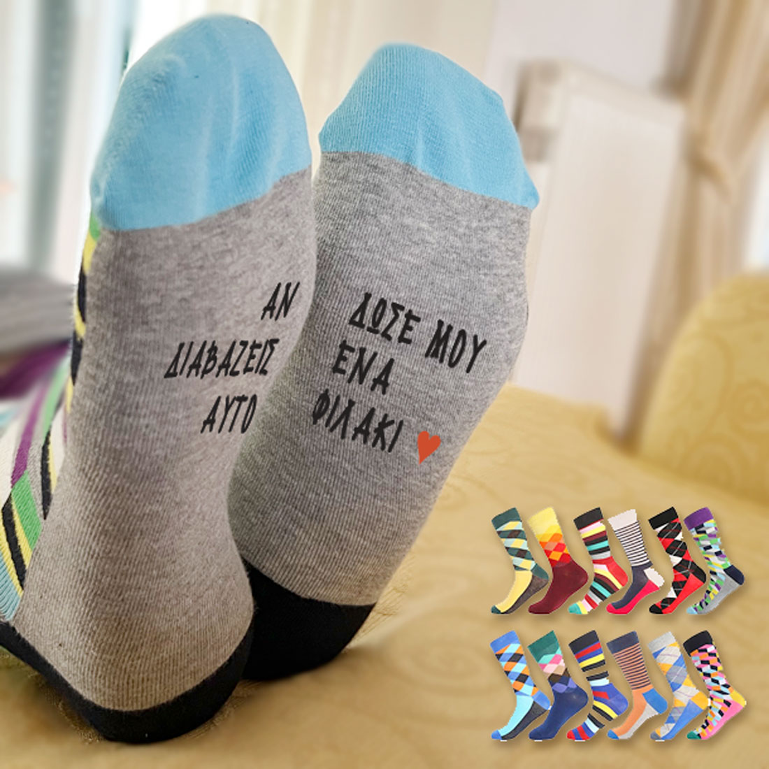 Ανακαλύψτε το προσωποποιημένο δώρο για Άνδρες & γυναίκες, Κάλτσες πολύχρωμες με Μήνυμα, Όνομα, πρωτότυπο και μοναδικό αναμνηστικό για τον φίλο ή την φίλη σας με αφορμή του Αγίου Βαλεντίνου.
