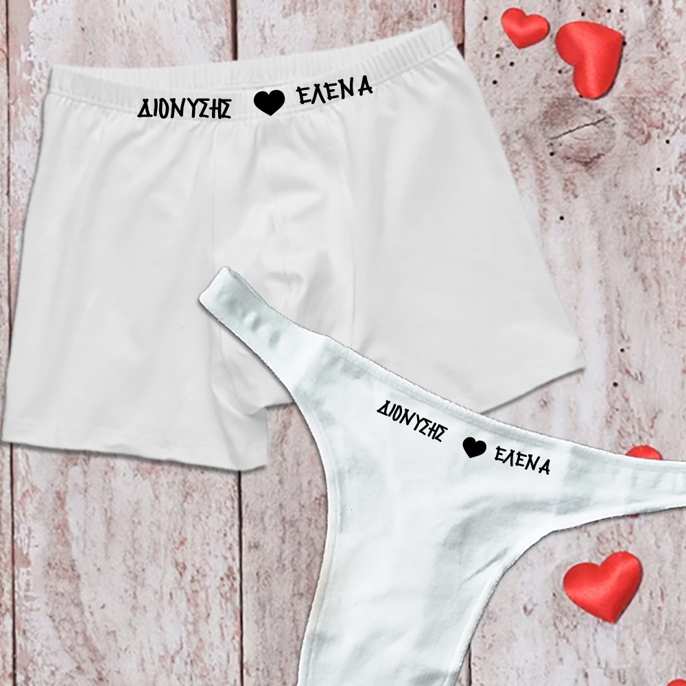 Ανακαλύψτε ένα διαφορετικό & πρωτότυπο δώρο για κάθε ζευγάρι με οποιαδήποτε αφορμή. Ανδρικό Μποξεράκι & Γυναικείο σλιπάκι με δυνατότητα επιλογής είτε το. κάθε ένα χωριστά είτε σε και για τους δύο σας.