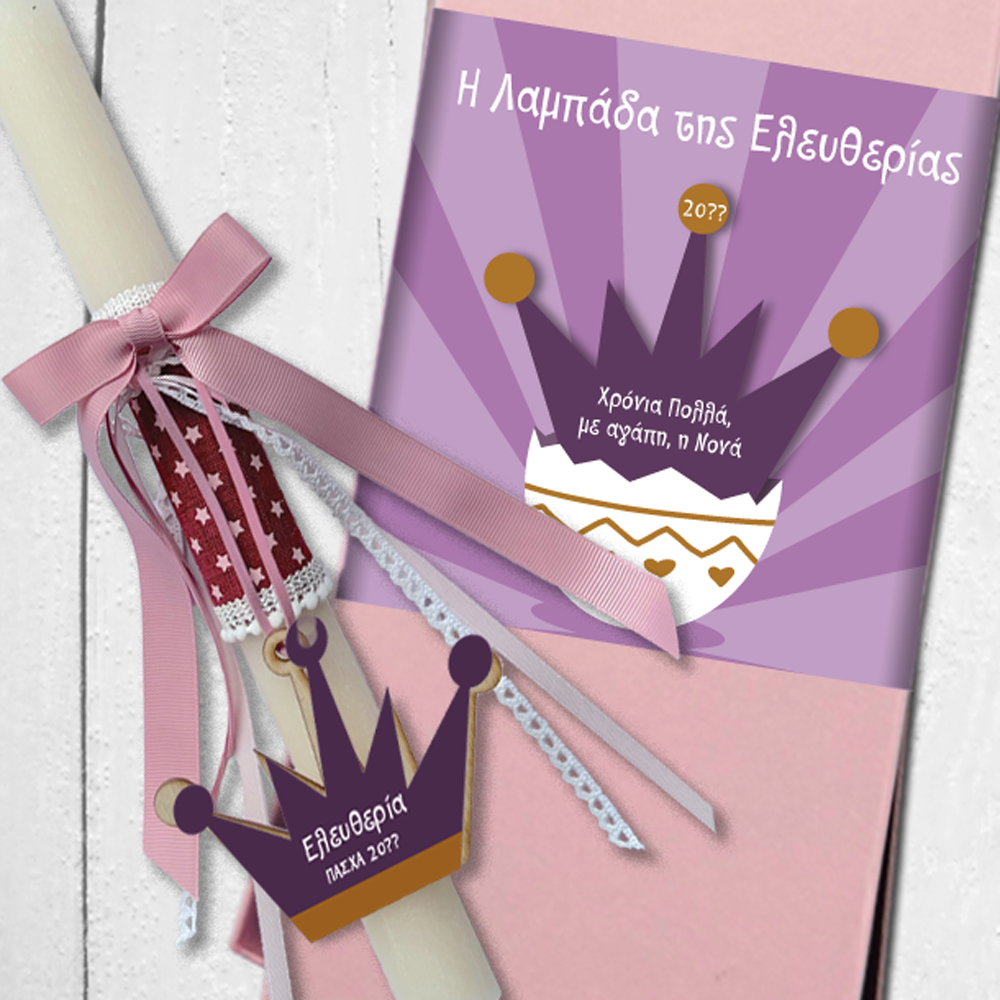 Αυτό το πάσχα η Λαμπάδα της νονάς μπορεί να είναι ξεχωριστή και προσωποποιημένη Λαμπάδα Χειροποίητη με ξύλινο διακοσμητικό Κορώνα με Όνομα, Ευχές.