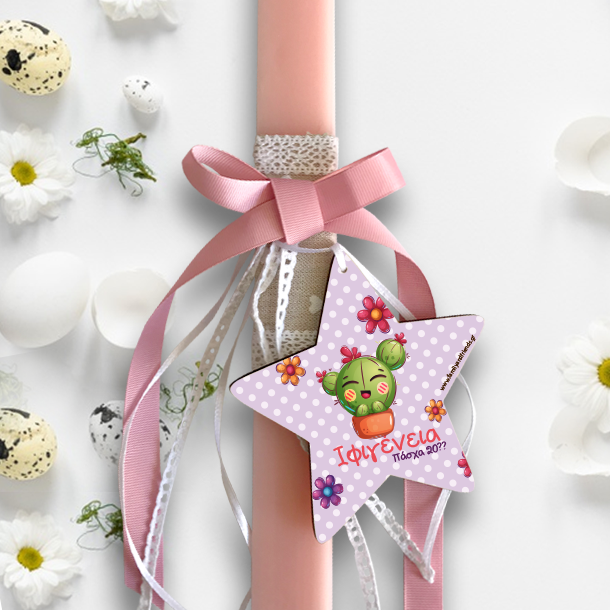 Η Προσωποποιημένη Πασχαλινή Λαμπάδα με Αστέρι Ξύλινο Διακοσμητικό με Όνομα, Έτος, Χειροποίητη για Κορίτσια, φτιάχνεται από την αρχή αποκλειστικά και μόνο για το αγαπημένο σας βαφτιστήρι ηλικίας 1 ετους έως 12 ετών!