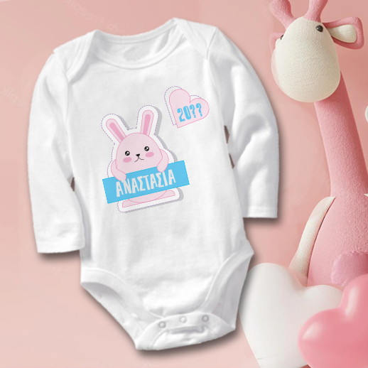 Για κορίτσια, βρέφη Προσωποποιημένο Πασχαλινό Δώρο Φορμάκι Βρεφικό με ροζ Λαγουδάκι με στάμπα Μήνυμα, Έτος, για αγοράκι ή κοριτσάκι.