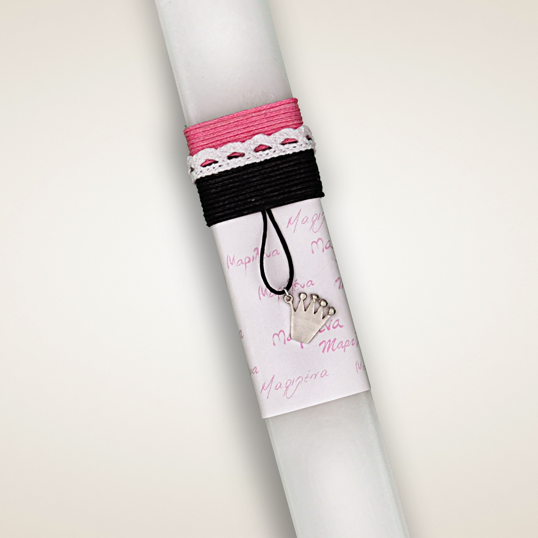 Χειροποίητη Λαμπάδα με Χειροποίητο κολιέ κορώνα ασημένια 925, για Βαφτιστήρι