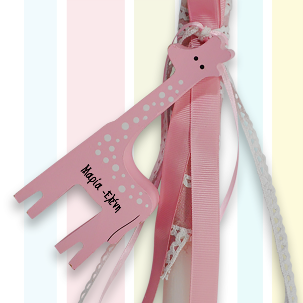 Προσωποποιημένη χειροποιητη Χειροποίητη Λαμπάδα με Ξύλινη Καμηλοπάρδαλη, με Όνομα, Έτος, η διαφορετική λαμπάδα που η Νονά μπορεί να προσφέρει τις ευχές της στο βαφτιστήρι της αυτό το Πάσχα.
