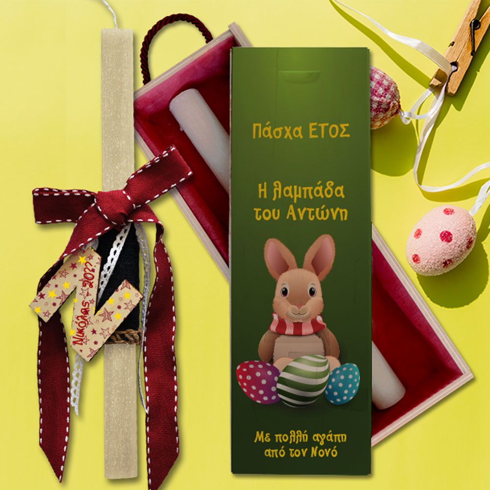 Λαμπάδα με κουνελάκι Χειροποίητη σε Ξύλινο Κουτί με Όνομα