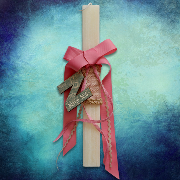 Χειροποίητη Πασχαλινή Λαμπάδα με ξύλινο διακοσμητικό με Αρχικό Ονόματος του παιδιού