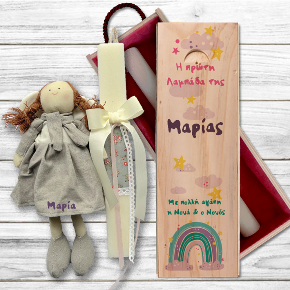 Η Πρώτη Λαμπάδα σε Ξύλινο Κουτί, με Όνομα, Ευχές