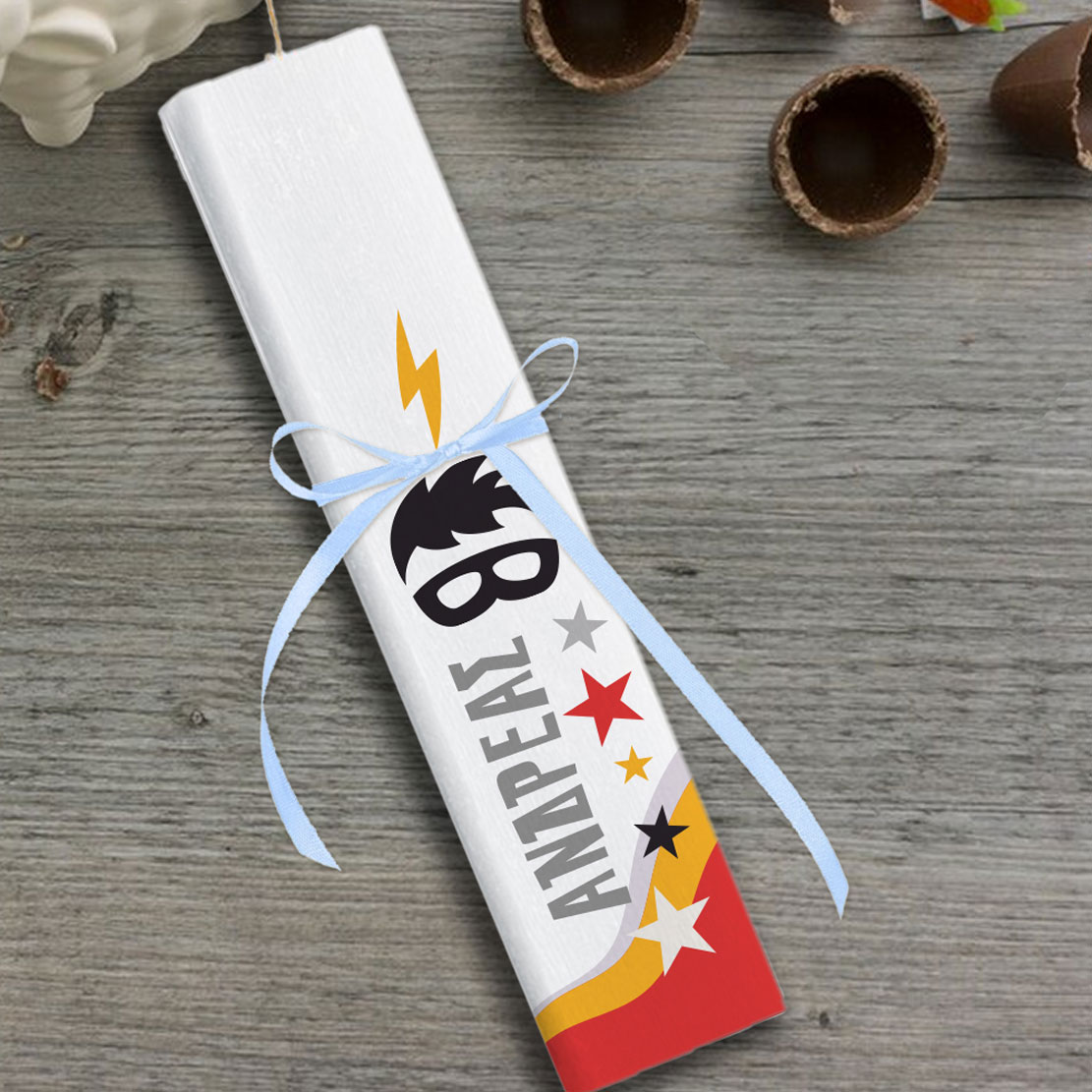 Πασχαλινή Χειροποίητη Λαμπάδα με Όνομα για βαφτιστήρι αγόρι, αγόρια που πηγαίνουν στο νηπιαγωγείο ή το δημοτικό. Ένα ξεχωριστό δώρο Πάσχα από την γιαγια στο αγαπημένο της εγγονάκι. Χειροποίητη Λαμπάδα με Όνομα για βαφτιστήρι αγόρι, Πασχαλινό δώρο της Νονάς για αγόρια για την Α’ τάξη, Β’ τάξη, Γ’ τάξη, Δ’ τάξη, Ε’ τάξη, ΣΤ’ τάξη που θα κάνει η νονά στο βαφτιστήρι της, που θα εντυπωσιάσει και θα κρατηθεί ανανμνηστκό για πάντα.