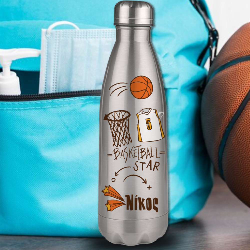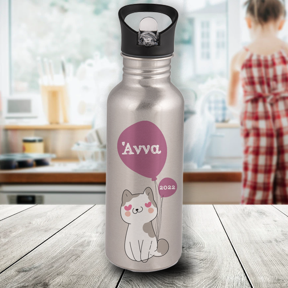 Πρωτότυπο δώρο για τη νέα σχολική χρονιά σε κάθε κορίτσι ή αγορι, που ξεκινάει το δημοτικό, το γυμνάσιο, τον παιδικό σταθμό ή το νηπιαγωγείο, Ανοξείδωτο Παγούρι Θερμός για Νερό με Όνομα, 750 ml, stainless steel,
