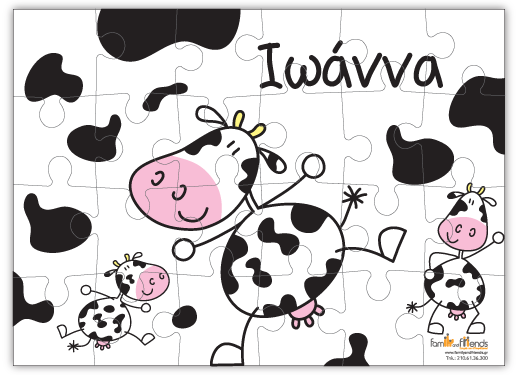 Παζλ με αγελάδες για παιχνίδι με τα παιδιά σας, με δυνατότητα να συμπληρώσετε το όνομα του παιδιού σας!.