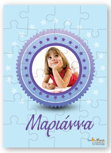 Παζλ με φωτογραφία σε κύκλο και δυνατότητα να γράψετε το όνομα που επιθυμείτε. Το Προσωποποιημένο puzzle, Παζλ με Φωτογραφία, Όνομα μήνυμα Δώρο για Αγόρια & κορίτσια 5 Ετών, 6 Ετών, 7 Ετών, 8 Ετών με όνομα είναι ένα έξυπνο, διαφορετικό και οικονομικό δωράκι που μπορείτε να αγοράσετε για το παιδί σας ή για το αγοράκι ή κοριτσάκι της φίλης σας ηλικίας 5 ετών. Το Προσωποποιημένο Παζλ με δική σου Φωτογραφία Δώρο για Αγόρι & κορίτσι στον παιδικό σταθμό, στο νηπιαγωγείο, της Α’ Δημοτικού, Β’ Δημοτικού, Γ’ Δημοτικού με όνομα, 120, 35, 300 κομματια, είναι το διαφορετικό, πρωτότυπο δώρο που μπορεί να κάνει ο νονός και η νονά στο βαφτιστήρι τους, ο θείος και η θεία στο ανιψάκι, η γιαγιά και ο παππους στο εγγονάκι. Προσωποποιημένο puzzle Παζλ με Φωτογραφίες Δώρο για Αγόρια 5 Ετών μπορεί να είναι το παιδικό δώρο γενεθλίων ( ή δώρο για το παιδικό πάρτι, το δώρο έκπληξη για τις διακοπές) που θα εντυπωσιάσει το αγοράκι ή το κοριτσάκι μόλις το ξετυλίξει και ξεχωρίσει από όλα τα υπόλοιπα δώρα που θα πάρει το παιδί στα γενέθλιά του, στο παιδικό πάρτι. Προσωποποιημένο puzzle, Παζλ με δική σας Φωτογραφία & Βούλες Δώρο για Αγόρια στο δημοτικό ή στο νήπιο με την φωτογραφία και το όνομα του παιδιού Φτιαξε το δικο σου παζλ 120, 35, 300 κομματια, Παζλ κατα παραγγελια, Παζλ με δικη σου φωτογραφια, παζλ για ενηλικες, Προσωποποιημενα παζλ, Παζλ με φωτογραφια, Καδρο με φωτο, ΠΕΡΙΓΡΑΦΗ Πάζλ από Χαρτόνι με γυαλιστερή επιφάνεια, Επιλογές: Α. Διάσταση περίπου 19Χ28, κομμάτια 35, Β. Διάσταση περίπου 20Χ29, κομμάτια 120, Γ. Διάσταση περίπου 29Χ40 κομμάτια 300 4 χρωμη, Προσωποποιημένη Εκτύπωση, περιλαμβάνεται κουτί που μπαίνει το παζλ, Το χρώμα της συσκευασίας δώρου εξαρτάται από την διαθεσιμότητα