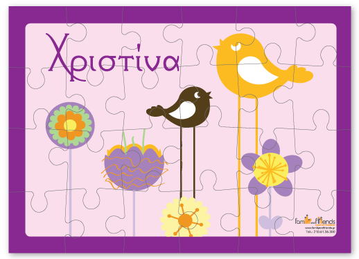 Παζλ με πουλάκια σε ροζ φόντο και δυνατότητα να γράψετε το όνομα του παιδιού σας.