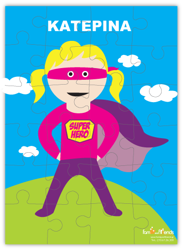 Παζλ με σούπερ ηρωίδα, κάθετο με δυνατότητα να συμπληρώσετε το όνομα της δικιάς σας σούπερ ηρωίδας.
