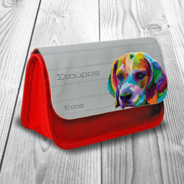Κασετίνα με Πολύχρωμο Σκύλο Υφασμάτινη με Όνομα, Έτος