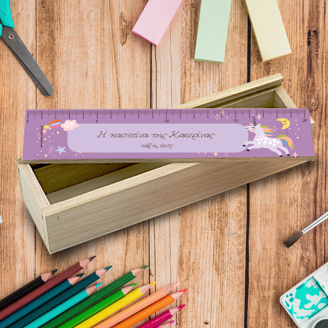 Σχολικά Είδη Προσωποποιημένα Σχολικες Κασετίνες ξύλινες, Μεταλλικές ή υφασμάτινες με Όνομα για Αγόρια, κορίτσια που πηγαίνουν στο δημοτικό ή το γυμνάσιο. Για μαθητές, μαθήτριες στην Α’τάξη , Β’τάξη , Γ’τάξη, Προσωποποιημένη Ξύλινη Κασετίνα με Μονόκερο για Κορίτσια Δημοτικού με Όνομα, είναι το πρωτότυπο δώρο που θα κάνει η θεία στο ανηψάκι της.