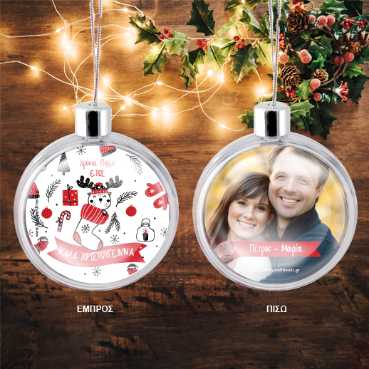 Η Πρωτότυπη Χριστουγεννιάτικη Διακοσμητική Μπάλα για το Δένδρο με Ευχή, Φωτογραφία δυο όψεων είναι το διαφορετικό χριστουγεννιάτικο δώρο που θα κάνετε είτε στον ευατό σας είτε στον παππού και την γιαγιά για να πείτε χρόνια πολλά με ένα γιαφορετικό και ξεχωριστό τρόπο.