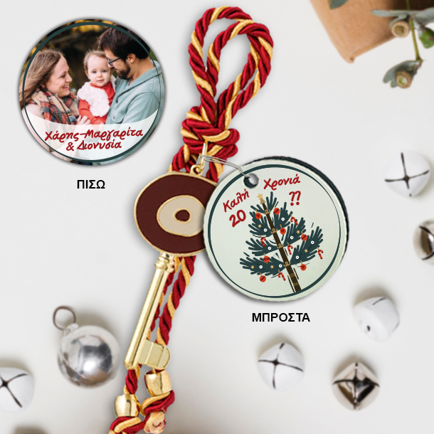 Ευχηθείτε Χρόνια Πολλά με το Χριστουγεννιάτικο Διακοσμητικό Γούρι Κλειδί με Μάτι με Φωτογραφία, Ευχές που θα στολίζει το σπίτι του παππου, της γιαγιάς ή κάθε φίλου ή συγγενή, για πολλά χρόνια.